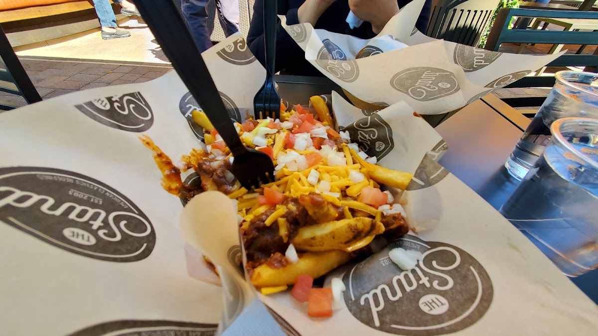 We were looking for some dinner and found The Stand on yelp. Reviews looked good so we thought we would check it out. Inside had tons of seating and outdoor seating as well. Inside was semi clean, but few tables had food still sitting from previous customers. Service was super friendly. We placed our order and we took our number and found a seat. Food took a while to come out, but once it did it was tasty. We loved the house made fries and guac. The fire fries were disappointing, they were completely soggy from all the sauce. Maybe put it on the side of just drizzle it on? The short rib grilled cheese was tasty and very filling. Next time we are in town we will be back